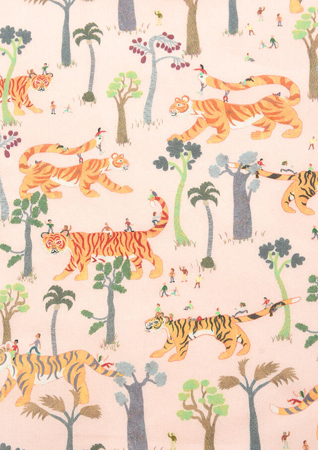 トラの優しさと保護能力にフォーカスを当てたこの作品は、リバティプリントの「キュー・フォー・ザ・ズー」のデザインで知られるイギリスの著名なイラストレーターが手がけました。