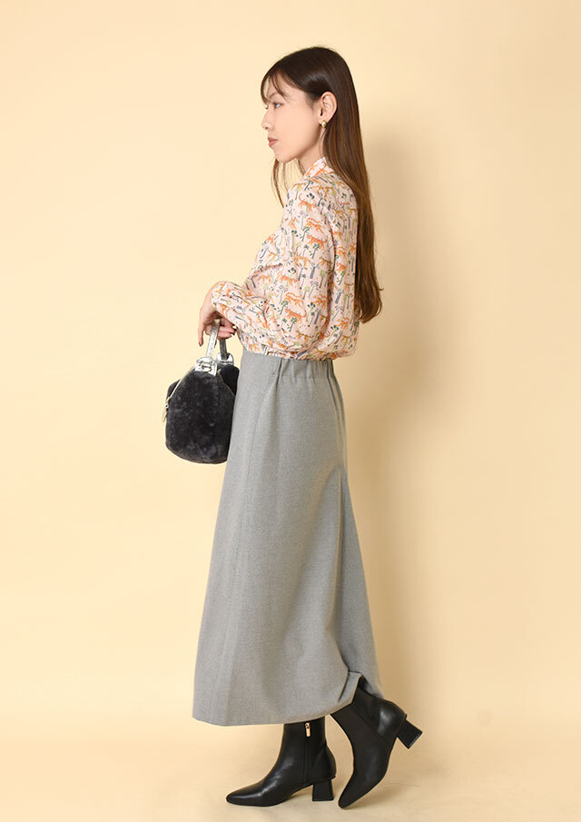 スカートと合わせれば、控えめで上質な華やぎが生まれ、品よくまとまったスタイルに。
