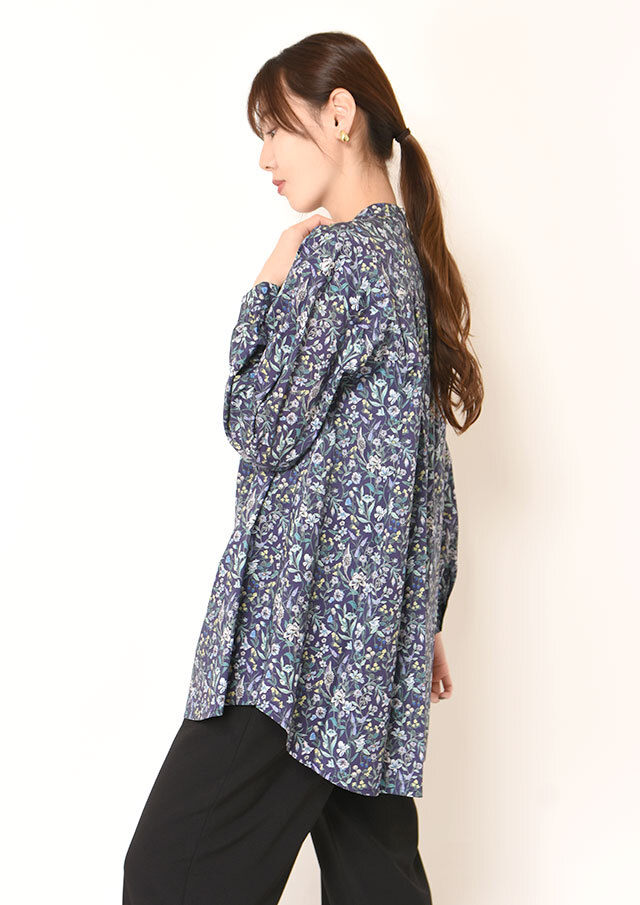 前を開けて羽織れば、柄がアクセントになり、シンプルなインナーとのレイヤードが映えそう。