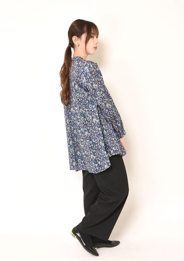 バックヨークの切り替えにはギャザーを寄せ、後ろ姿に自然なニュアンスを。