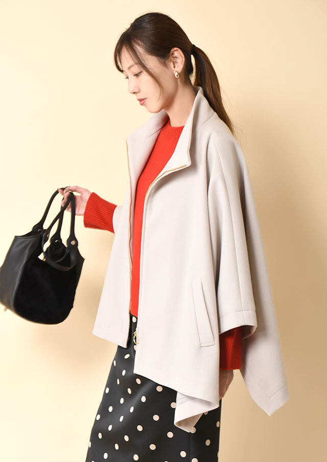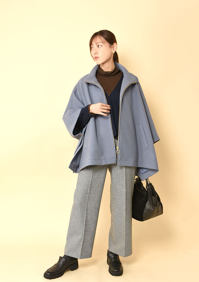 オンにもオフにも活躍する、スタイリング自在なポンチョコート。