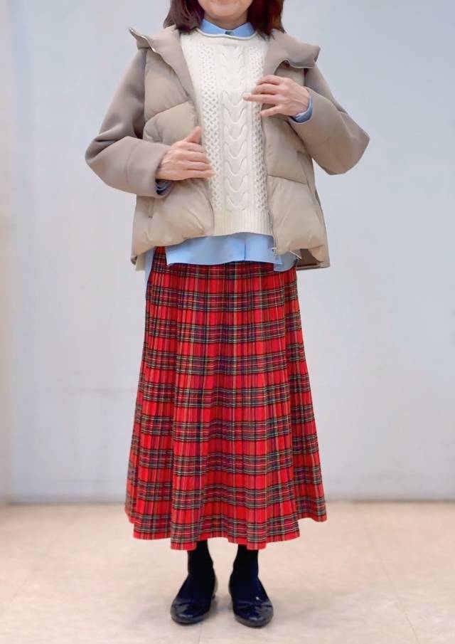 ロングスカートやプリーツスカートと合わせれば、動きのあるシルエットが生まれ、やわらかくフェミニンな雰囲気に。