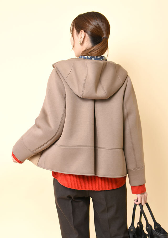 異素材の軽やかさとAラインシルエットを活かして、幅広いスタイルにマッチするブルゾン。