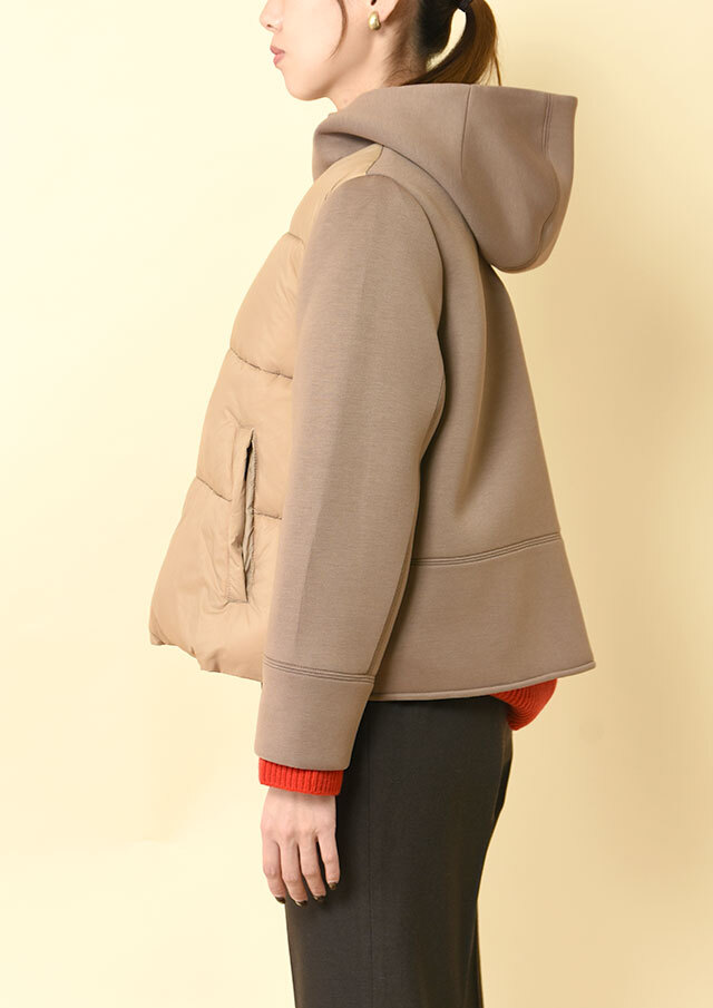 前身頃は中綿入りで保温性があり、軽いのにしっかり暖かい一枚です。