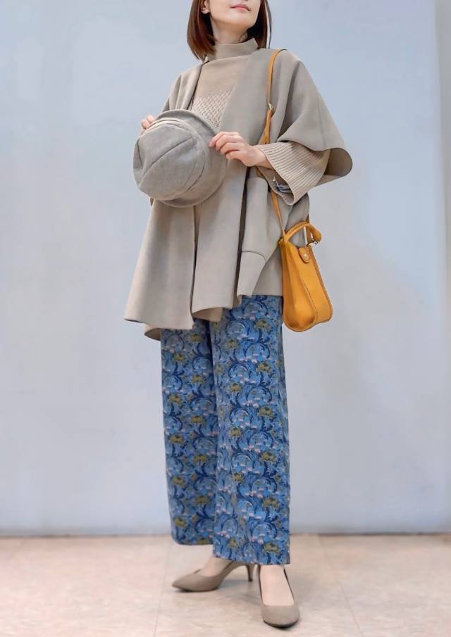 フレアスリーブとゆったりシルエットで、華やかさとリラックス感を両立させています。