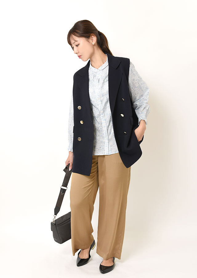 キレイめなスカートやトラウザーと合わせると、洗練された大人の雰囲気が漂い、オフィスやお出かけにもぴったり。