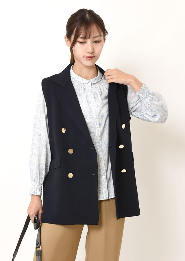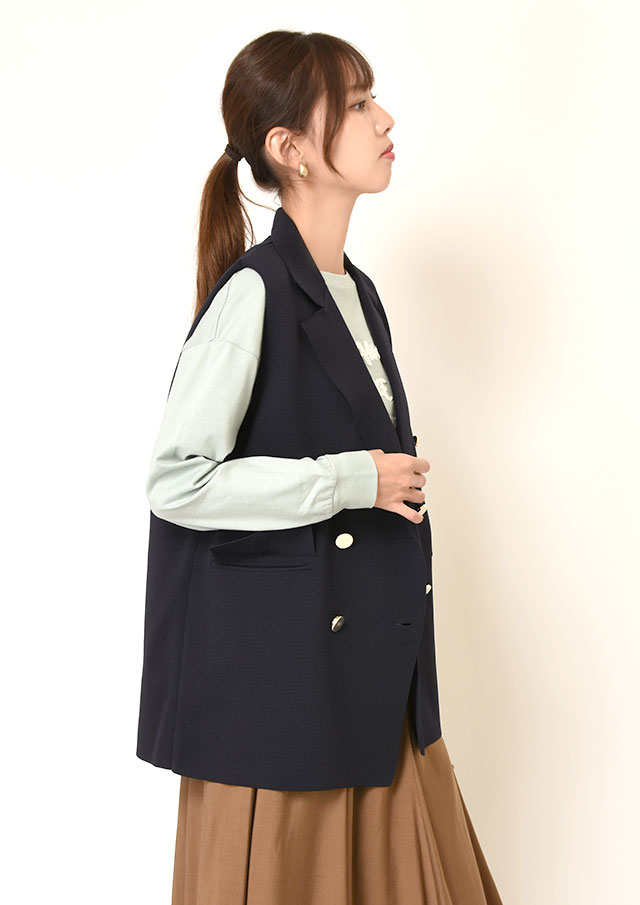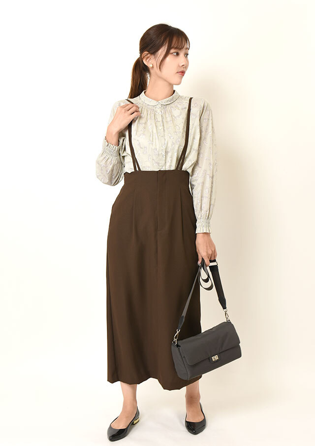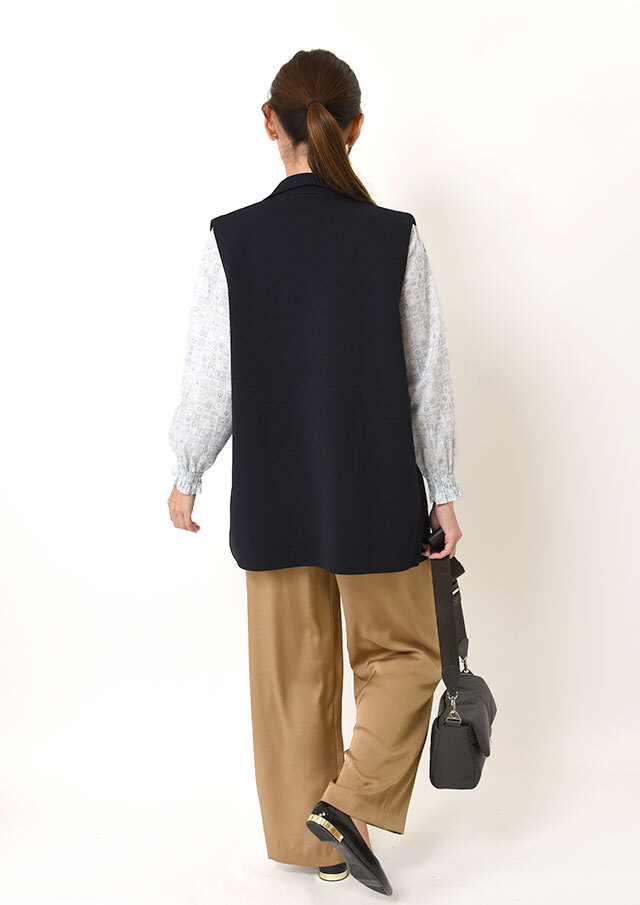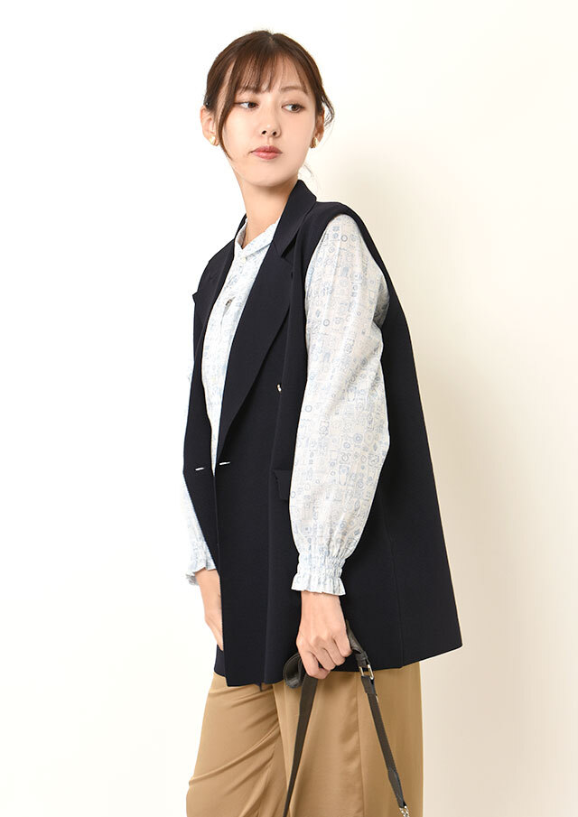 ネックラインにポイントがあるので、ニットやベストなどとレイヤードしても可愛く着こなせます◎