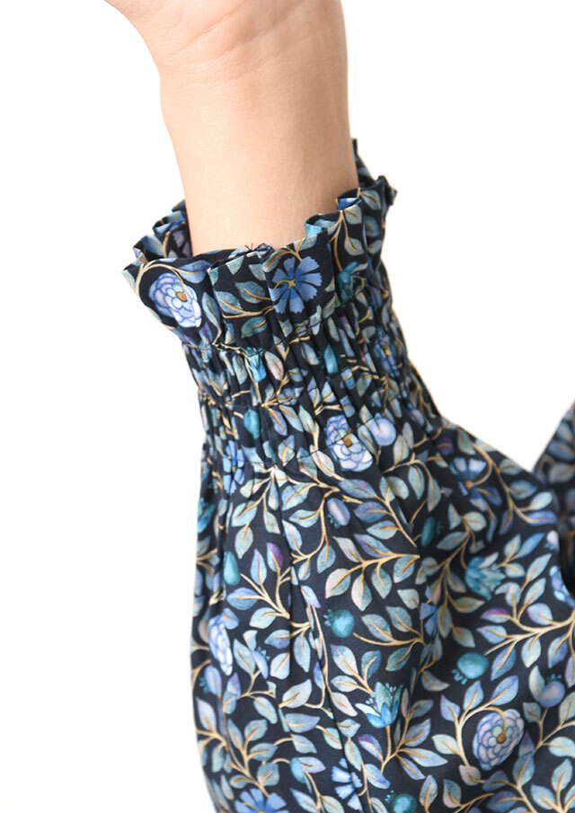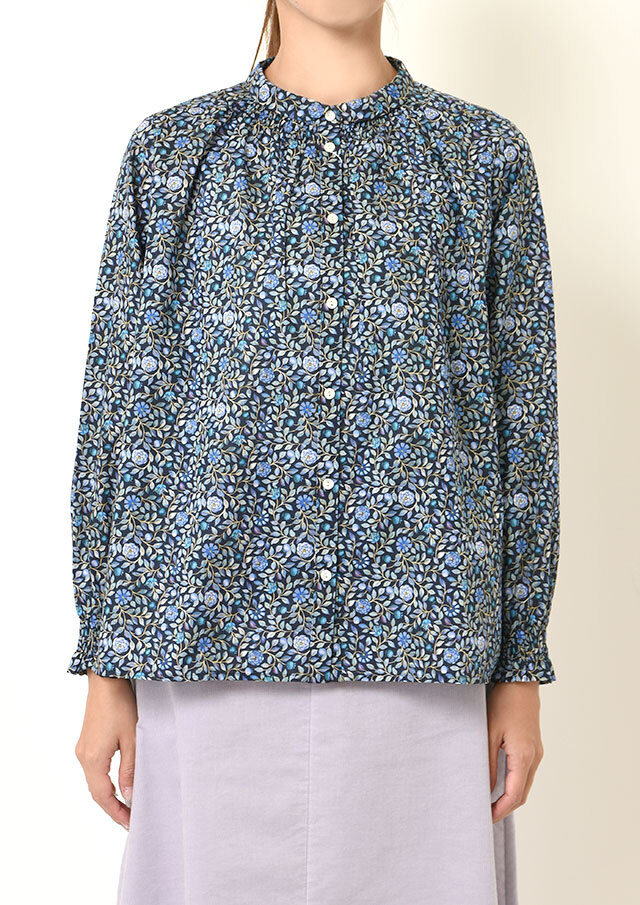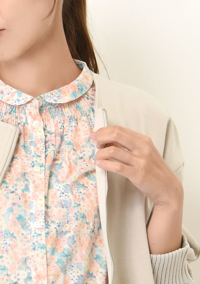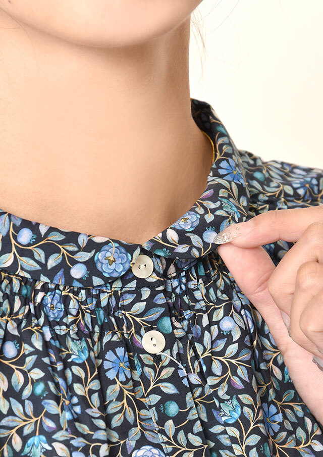 リバティの上質感、シャーリングで首回り美しく