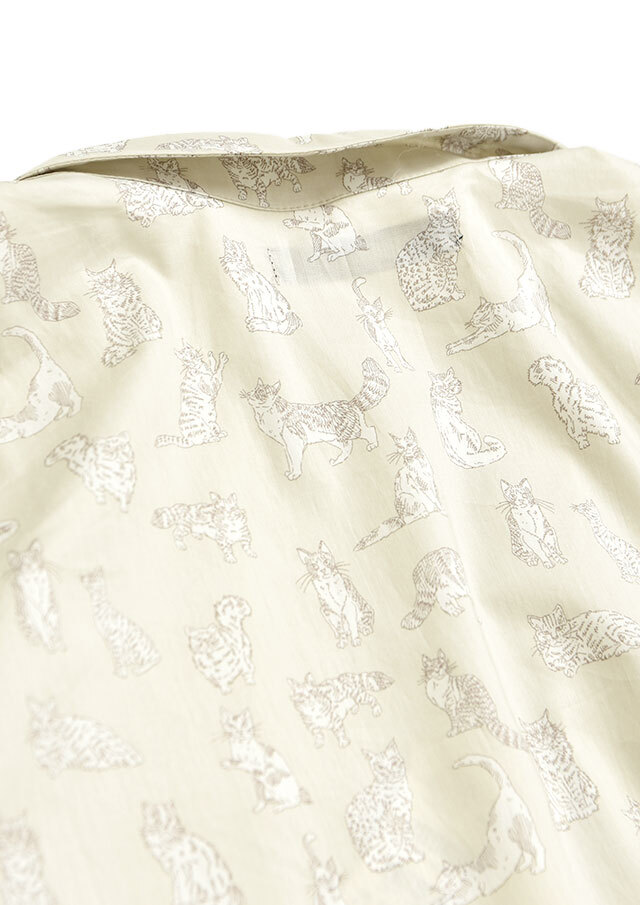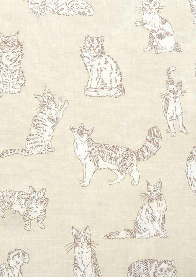 デザインスタジオで描かれたスケッチ風のインクペンのイラストは、大胆な地色に配置され、それぞれのネコを縁取るように丁寧に描かれています。
