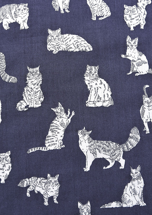 デザインスタジオで描かれたスケッチ風のインクペンのイラストは、大胆な地色に配置され、それぞれのネコを縁取るように丁寧に描かれています。