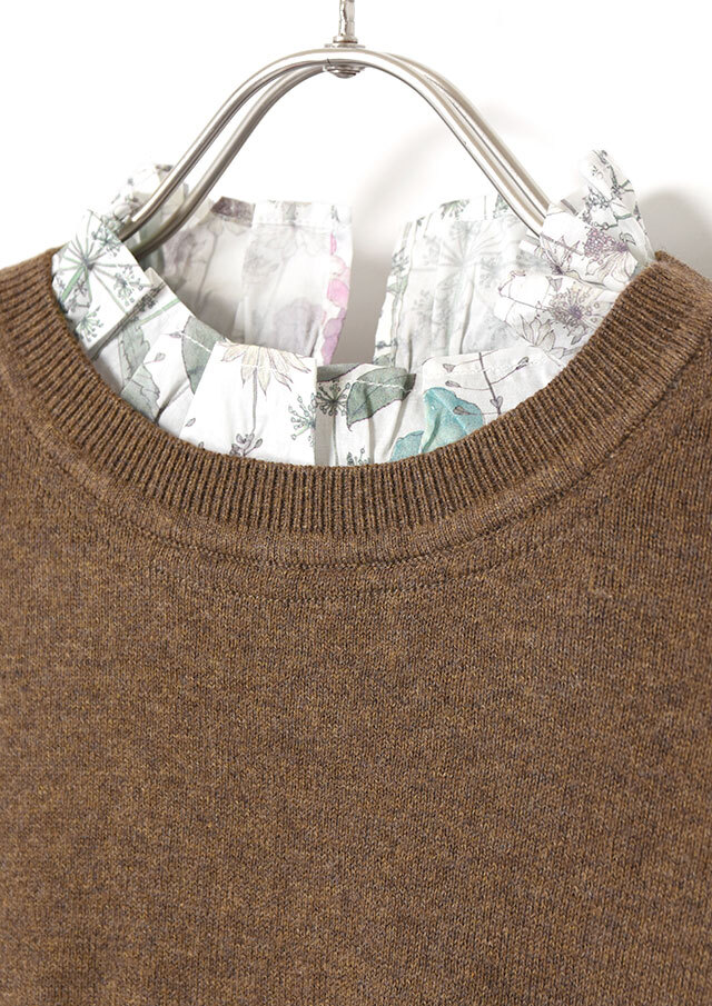 まるでブラウスをレイヤードしているかのようなデザインが魅力のニットプルオーバー。