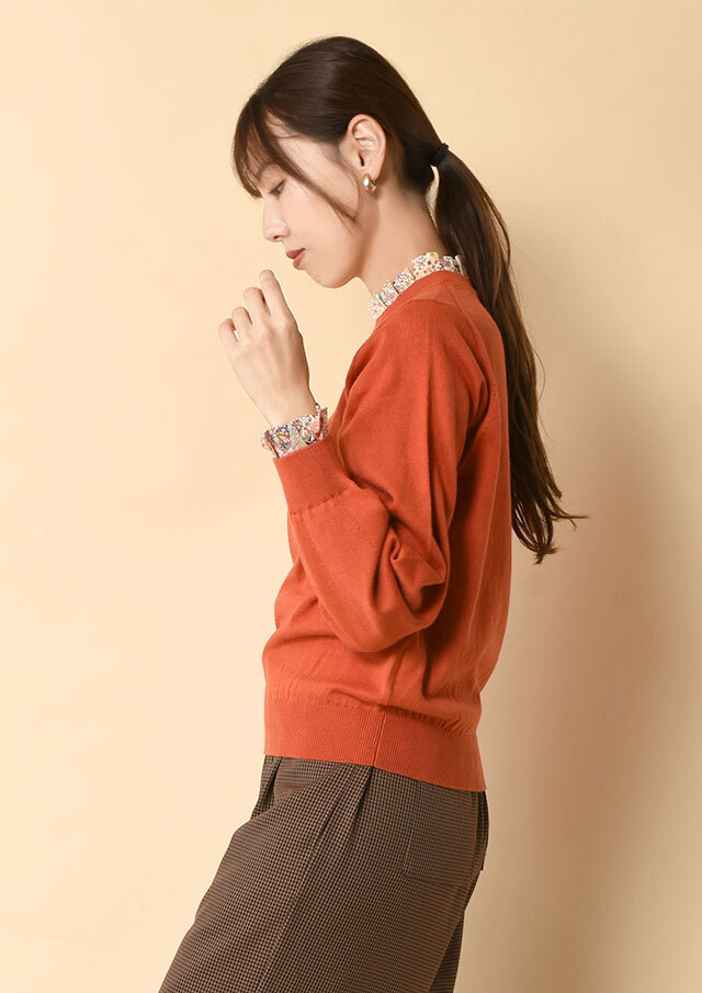 ジャケットやカーディガンのインナーとしても映え、秋冬のレイヤードスタイルに幅広く活躍します。