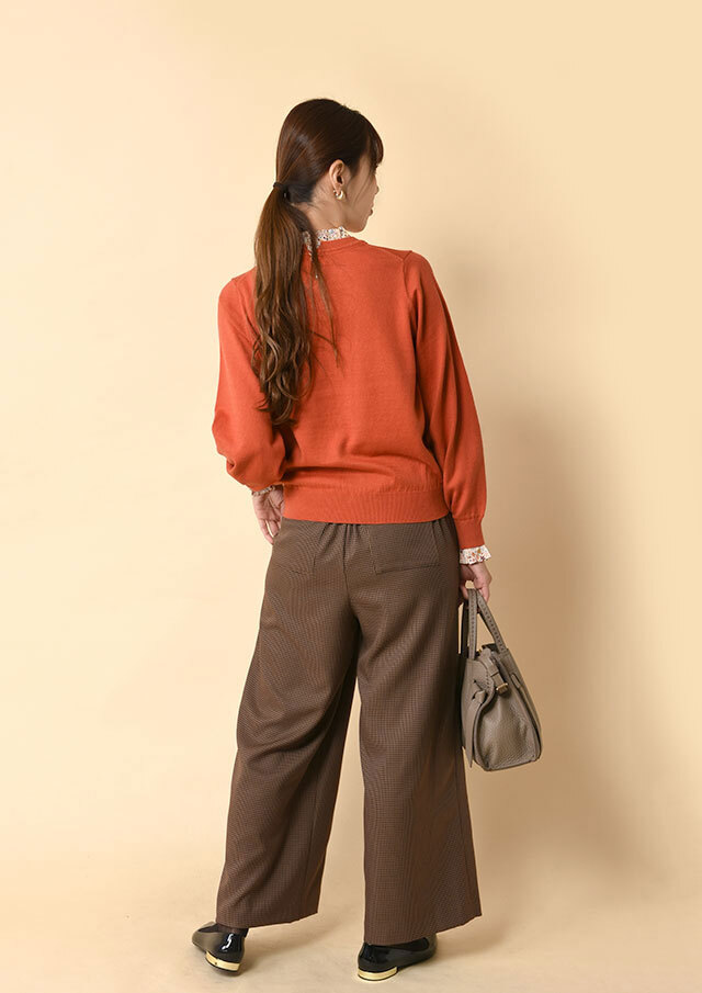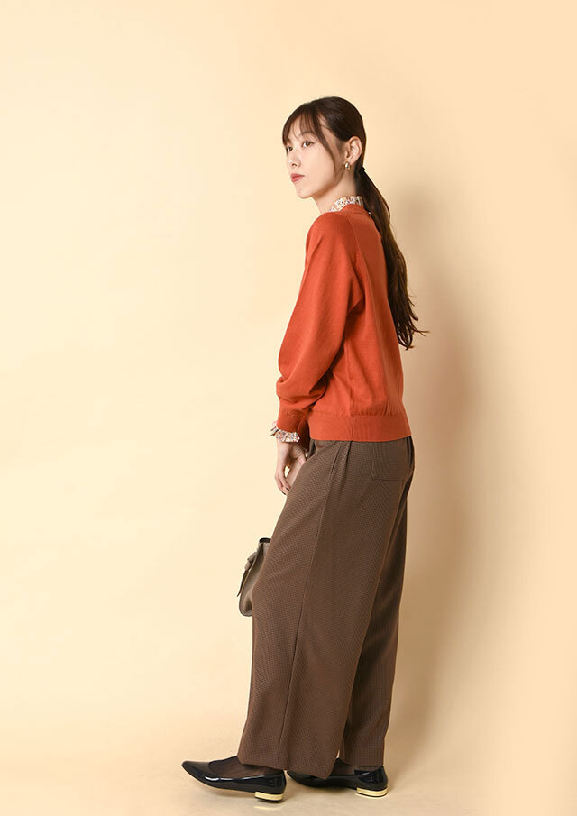 トラッドなチェック柄スカートやウールパンツを合わせれば、上品でクラシカルな印象に。