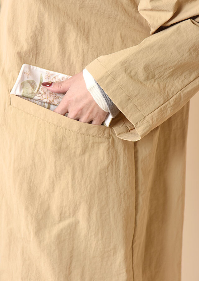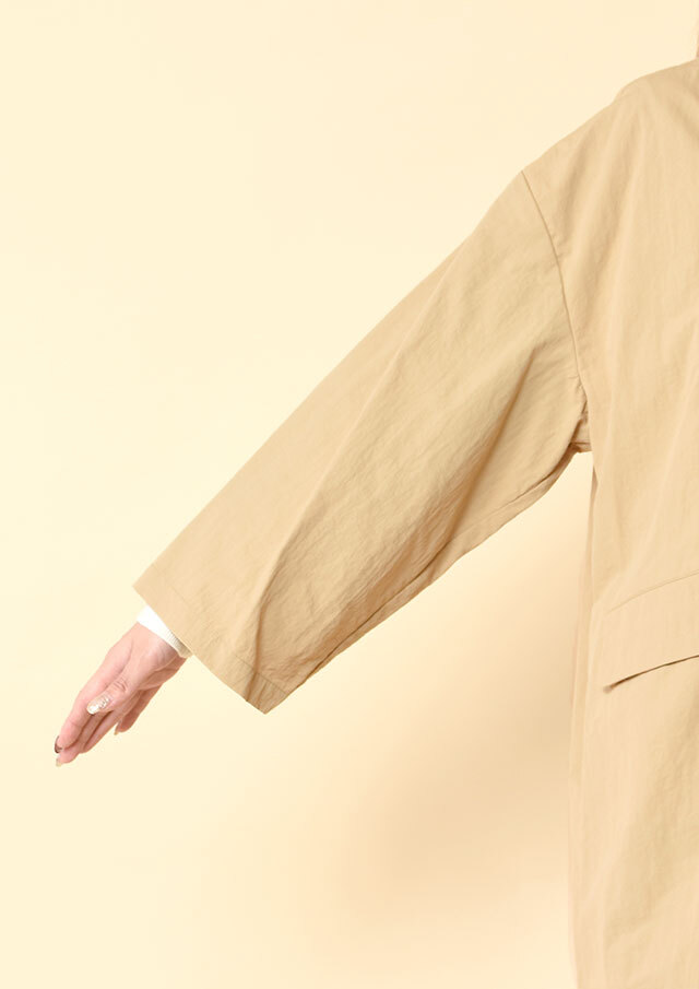 表情のあるワッシャー仕上げのナイロン素材を使用したスプリングコートです。