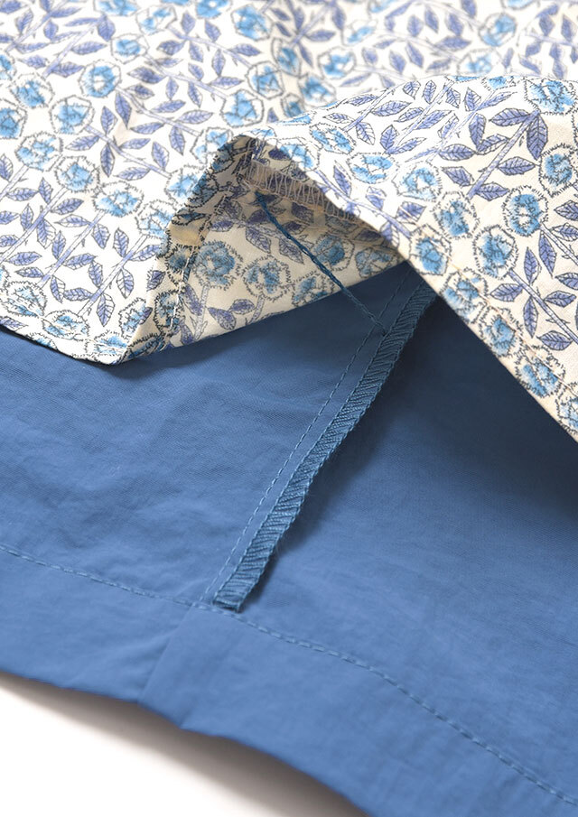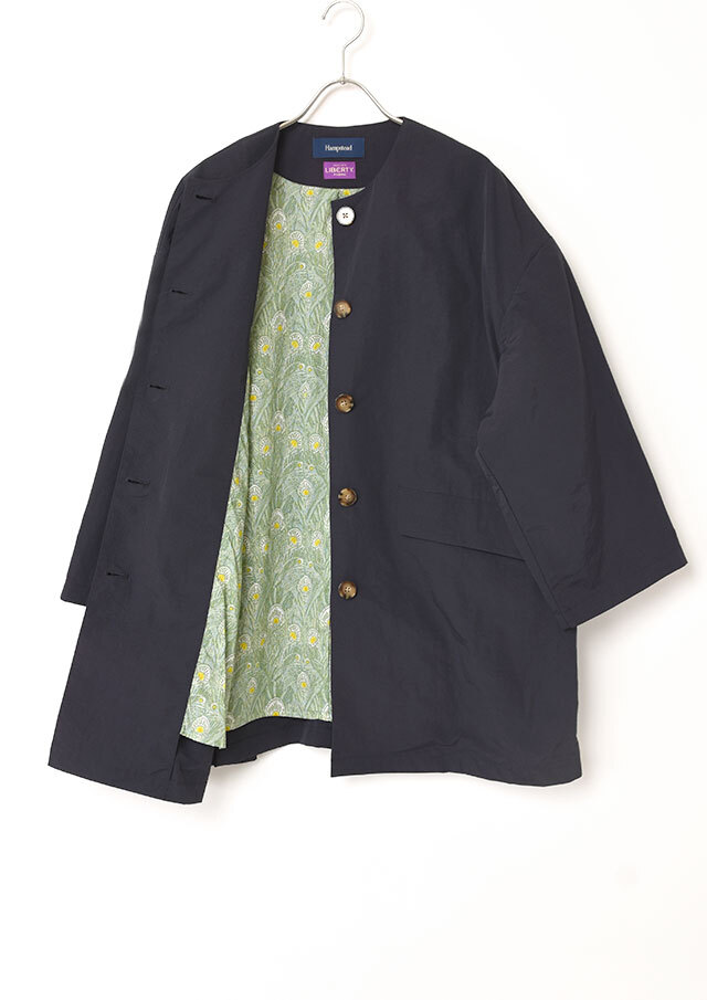 裏地にはコットン素材のリバティプリントをあしらい、袖を通すたびに気分が上がる仕上がりです。