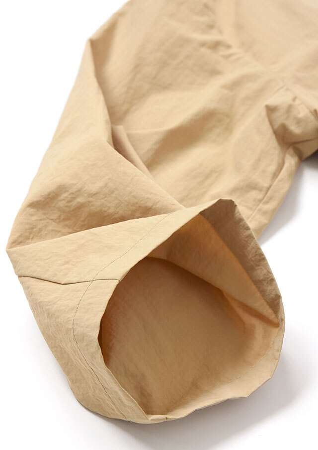 ワッシャー素材のニュアンスが、シンプルなパンツ合わせでも雰囲気のある着こなしに導きます。