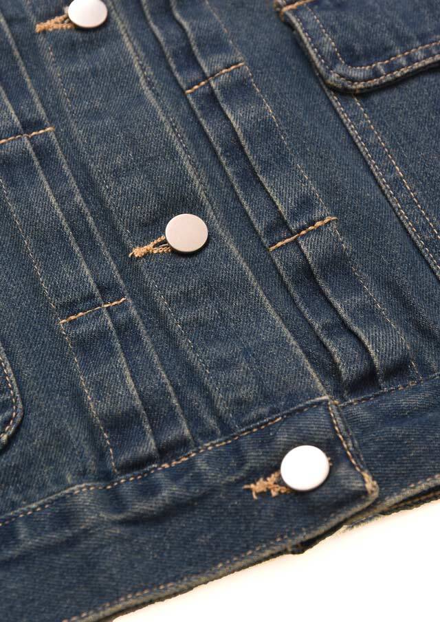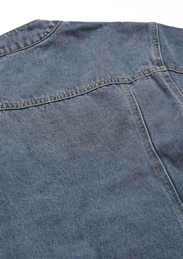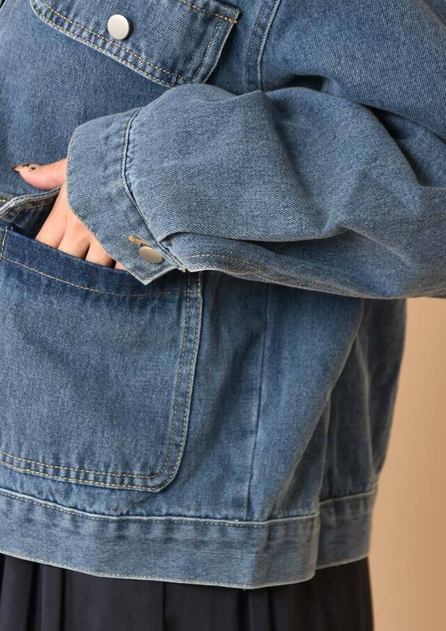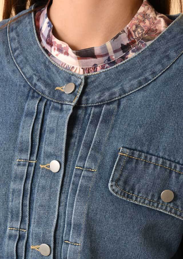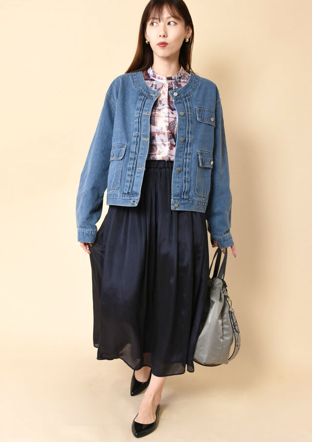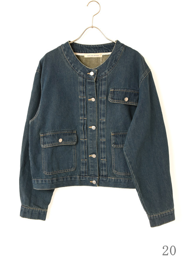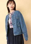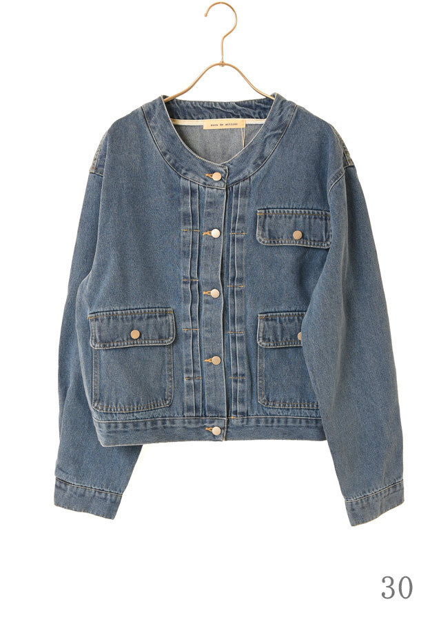 ノーカラーでスッキリとした印象のデニムジャケット。