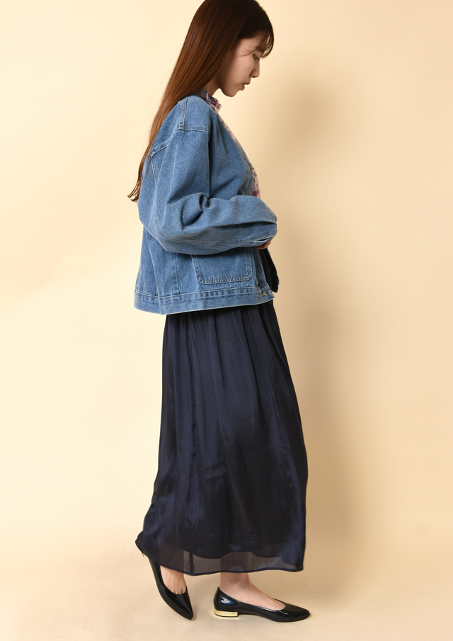 デニムらしい気楽さがありながら、女性らしい雰囲気も楽しめる一着です。
