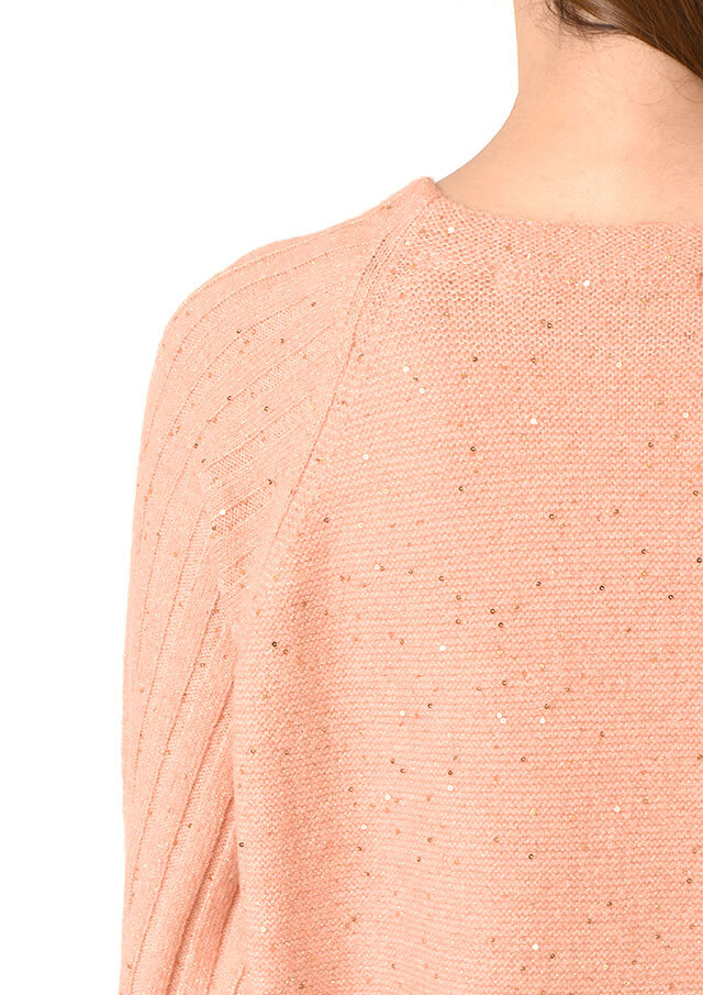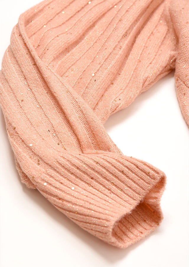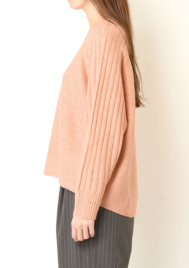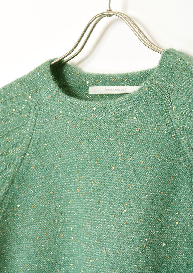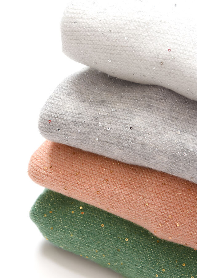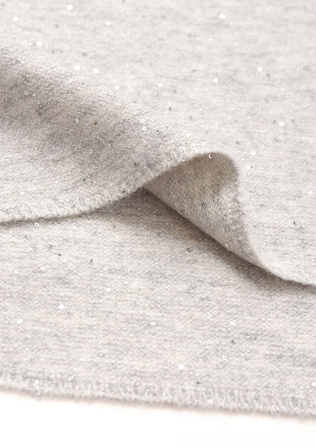 小さなスパンコールが編み込まれ、光の角度でさりげなくきらめく素材です。