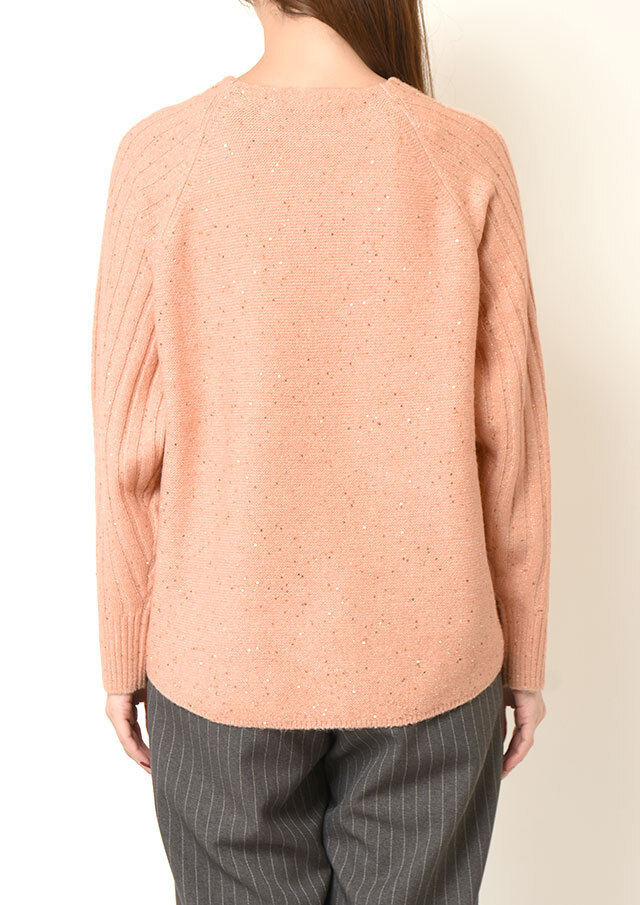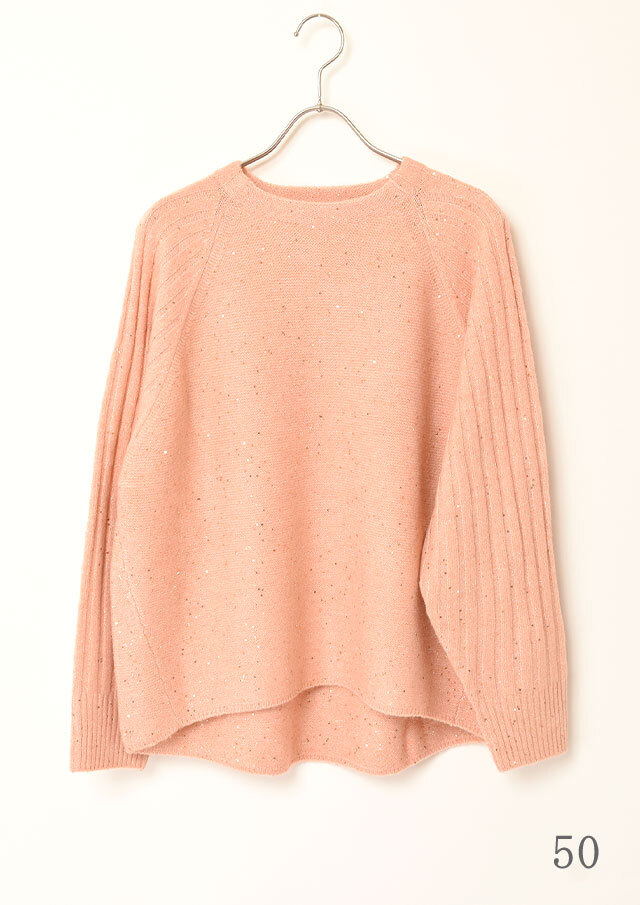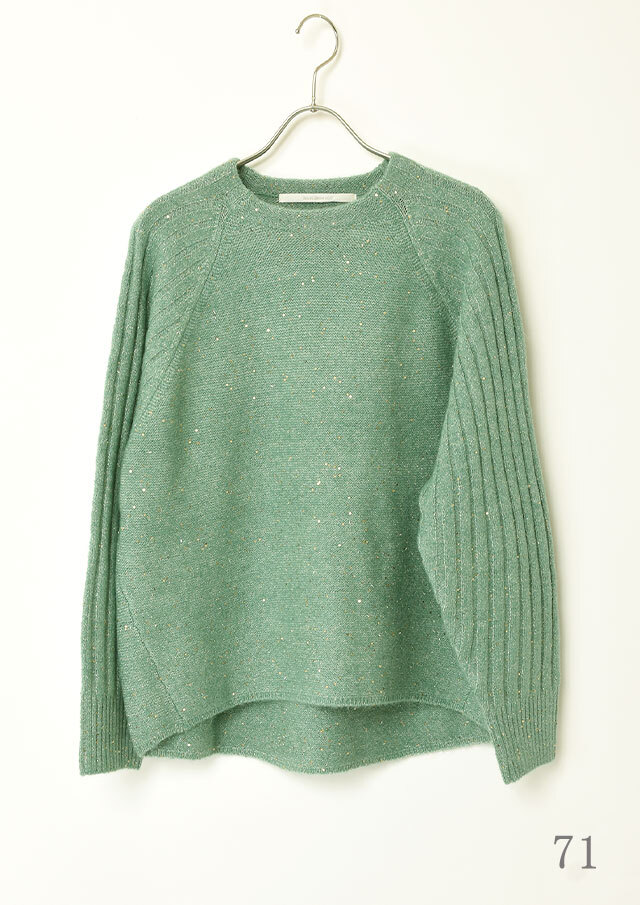 肩のラインが自然に落ちるラグランスリーブで、肩周りにリラックス感のあるプルオーバー。