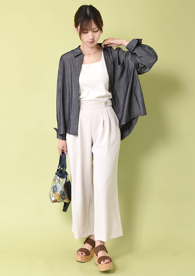 程よいハリがあり、透け感のない素材なので真夏に1枚でも着用OK。