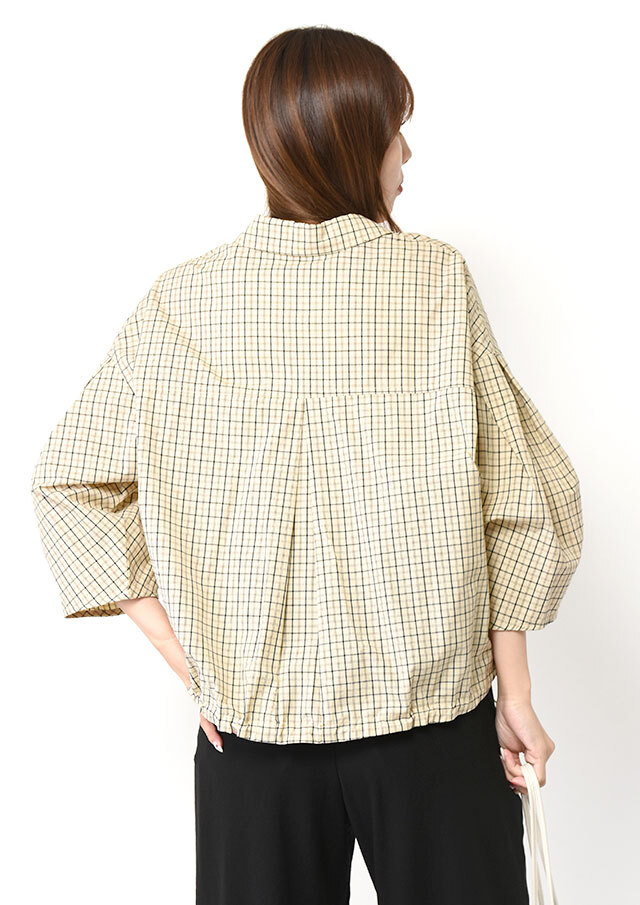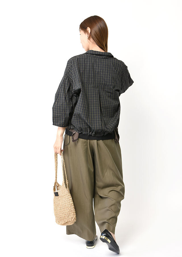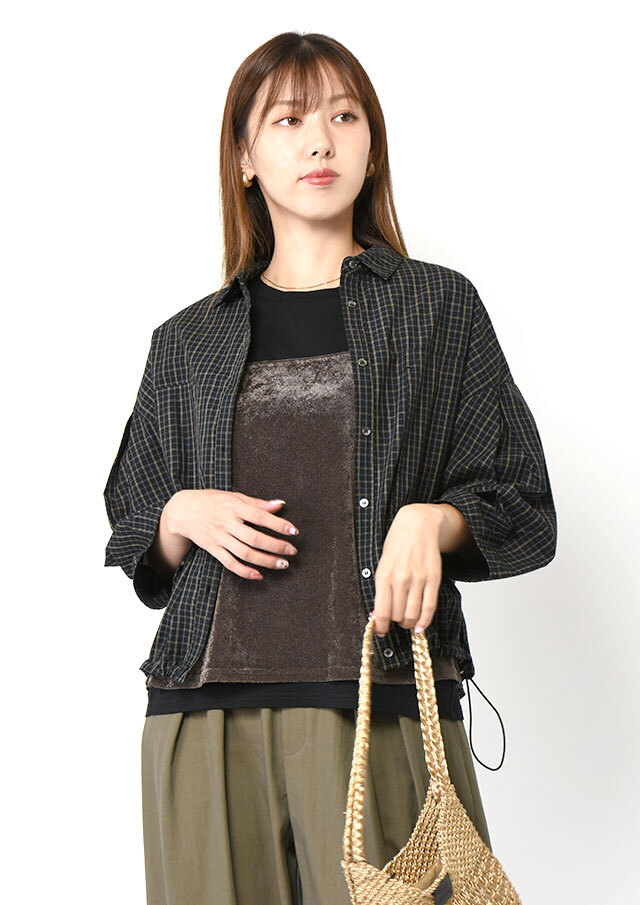 前を閉じて着ればブラウス風にもなり、ジャケット感覚でも楽しめるのが魅力。