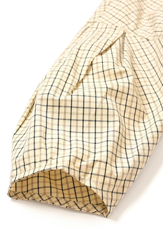 格子チェック柄は落ち着いたトーンで仕上げられており、大人の着こなしに寄り添います。