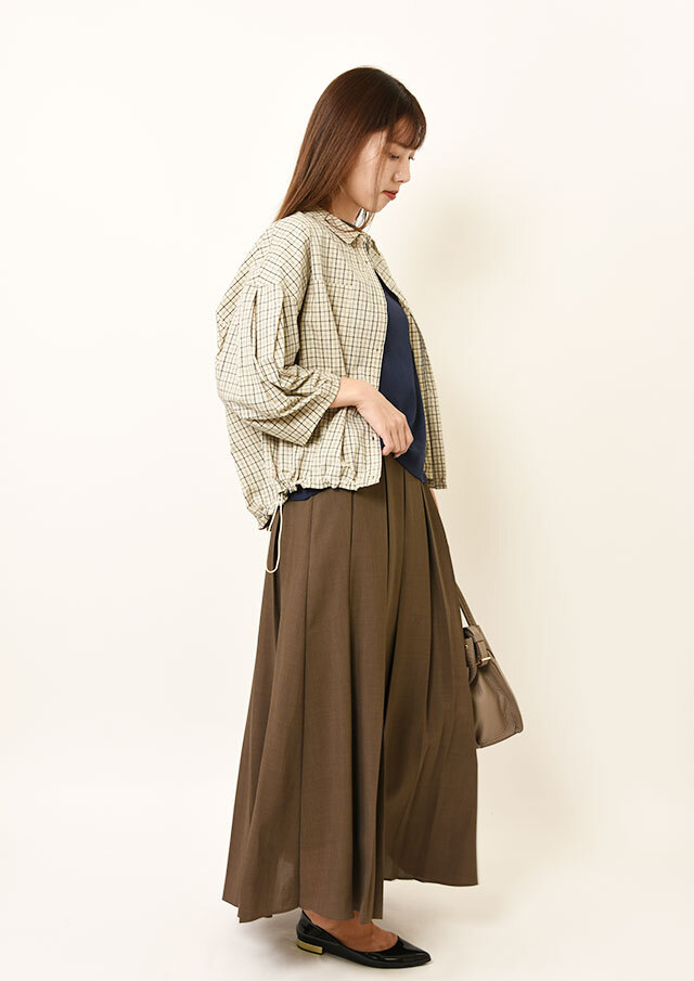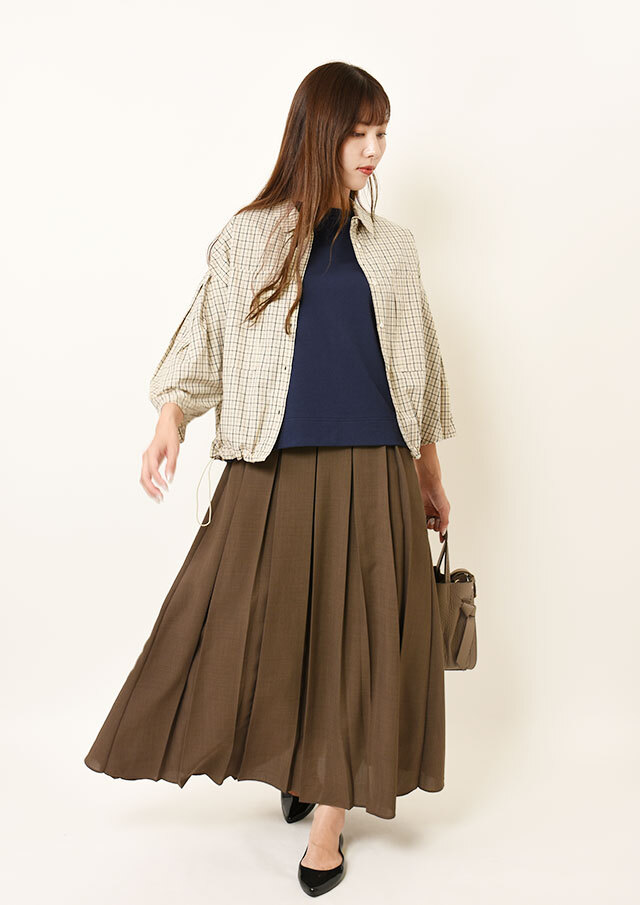 タイトスカートやナロースカートに羽織れば、女性らしいバランスに仕上がります。