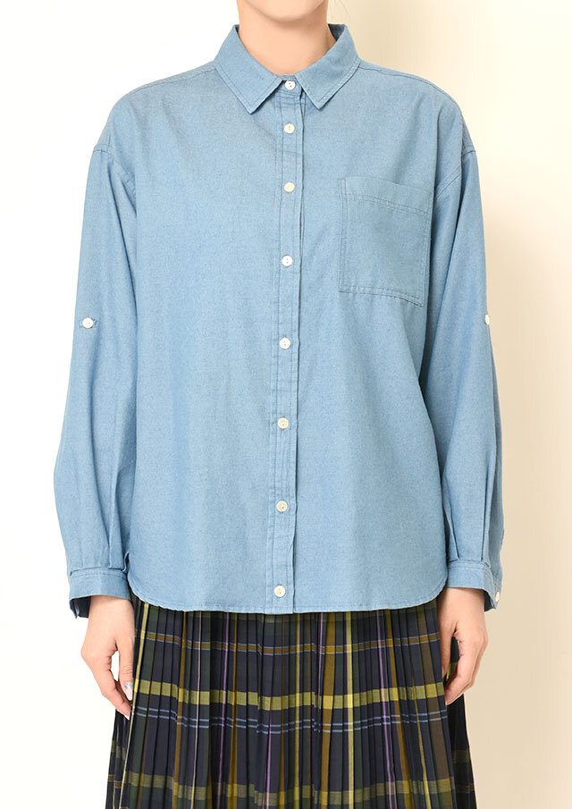 清涼感のあるコットン100%のシャンブレー素材を使用。