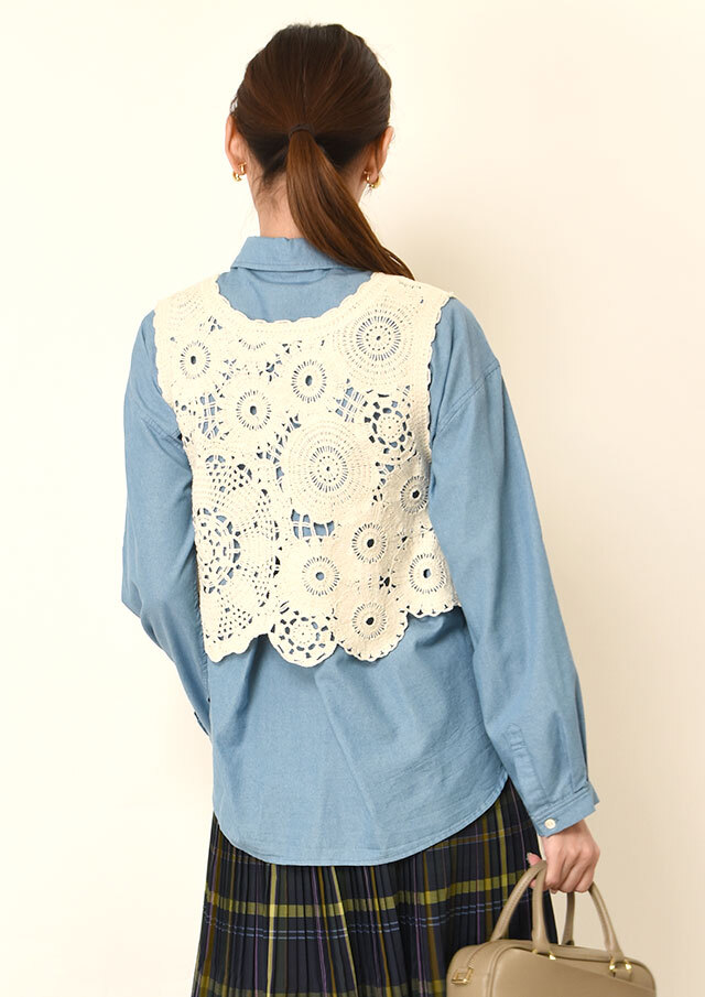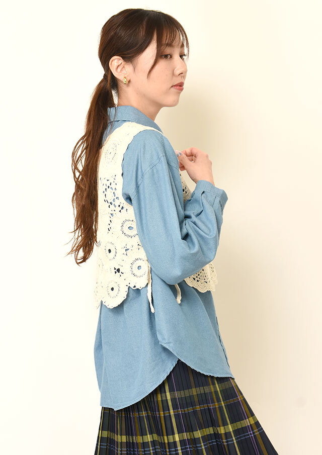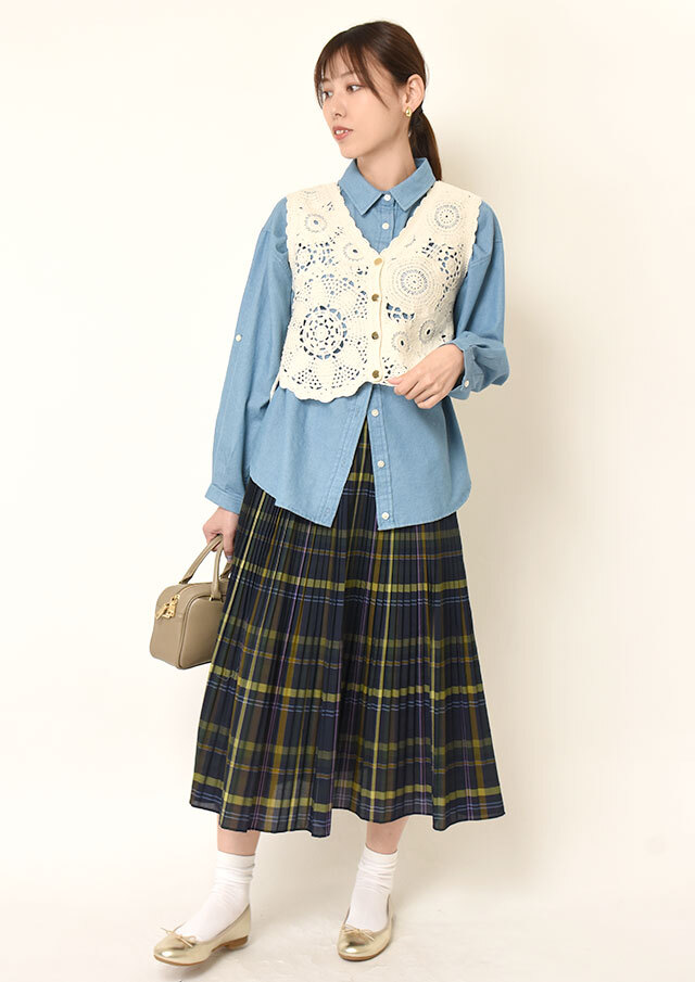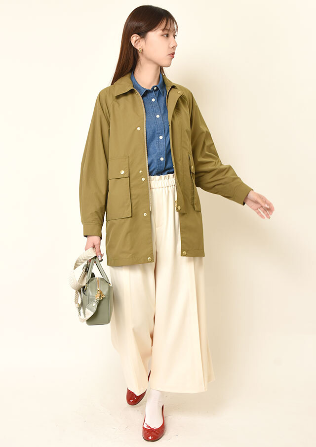 羽織りとしてデニムやチノパンに合わせれば、軽やかな重ね着として楽しめ、程よい抜け感を演出。