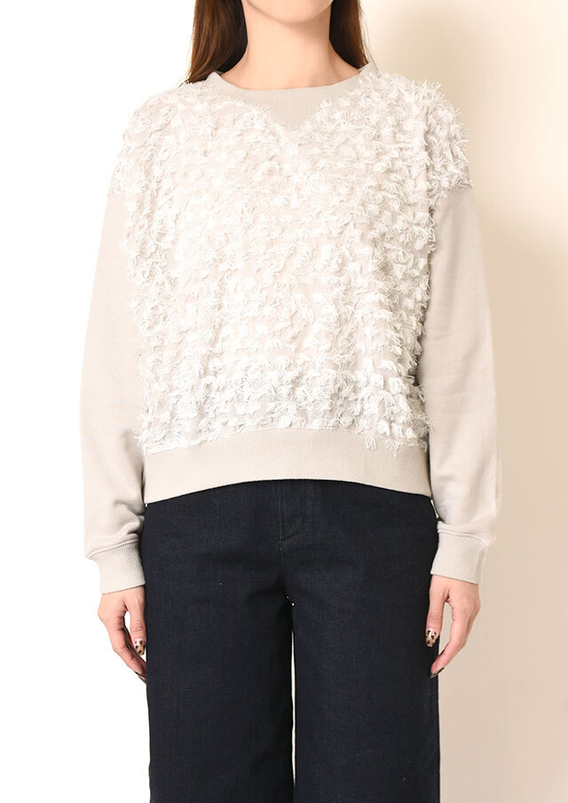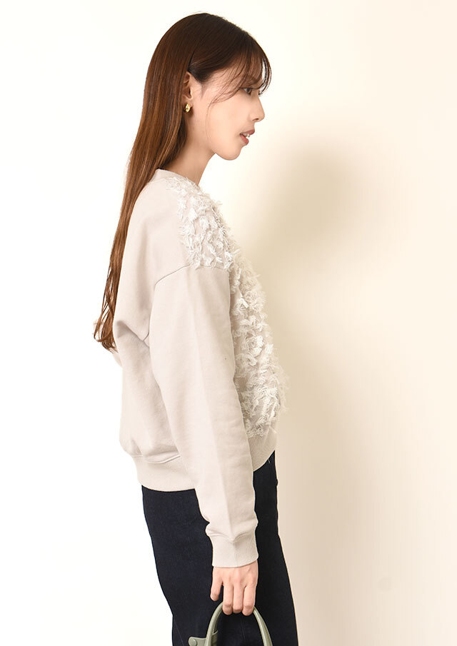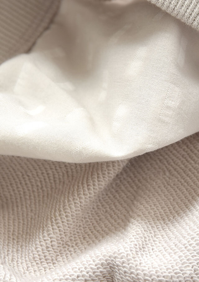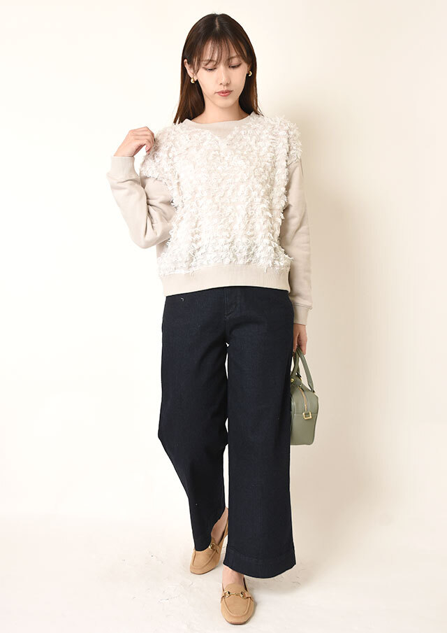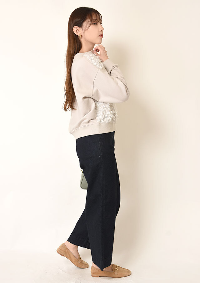スウェットライクな雰囲気と、フェミニンな素材感の絶妙なバランスが魅力です。