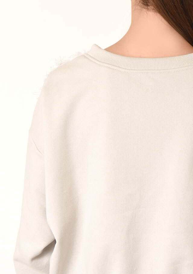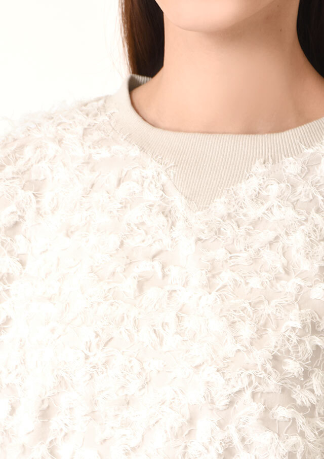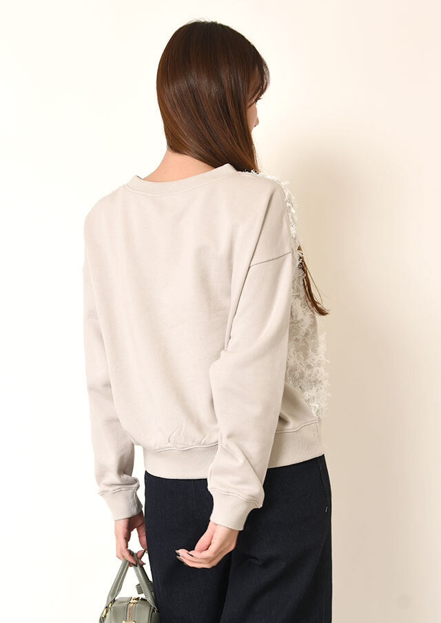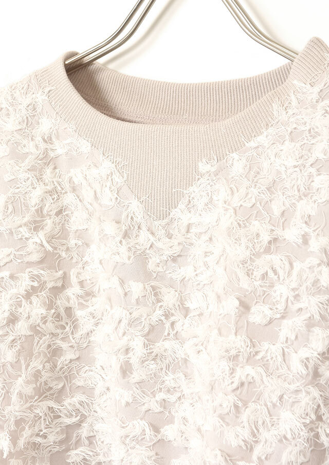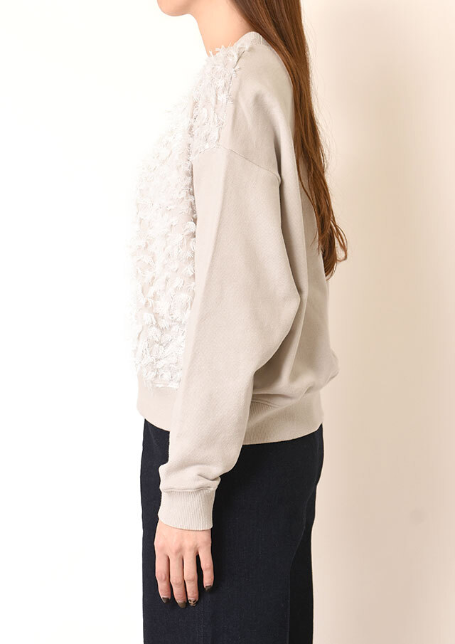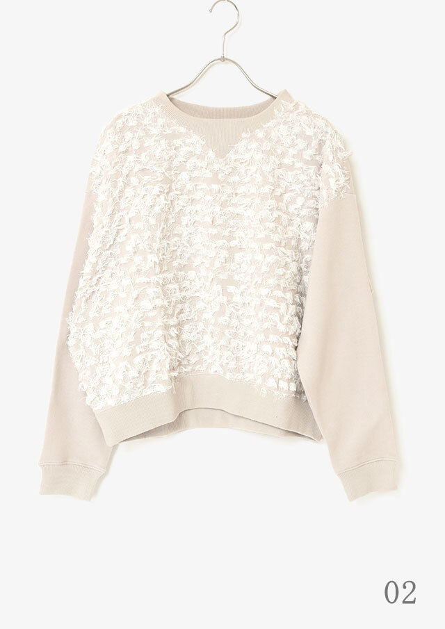 スウェットライクな雰囲気と、フェミニンな素材感の絶妙なバランスが魅力です。