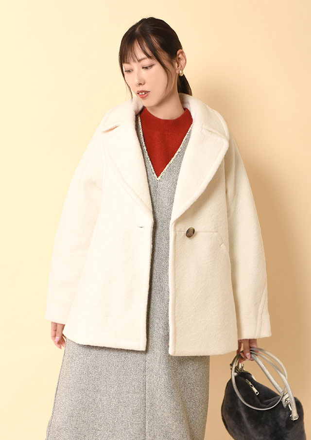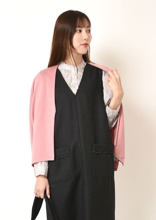 首周りと袖口にはやわらかなフリンジをあしらい、ほどよい立体感とニュアンスをプラス。