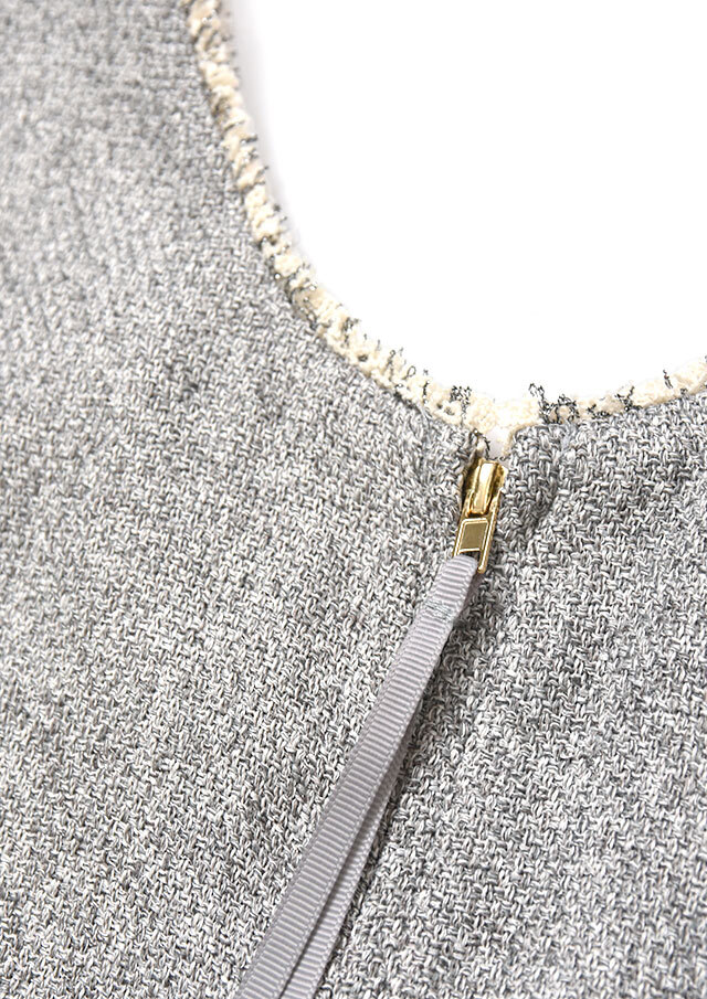 ジップにあしらったグログランテープはしなやかで、美しいラインを保ちつつアクセントとして機能します。