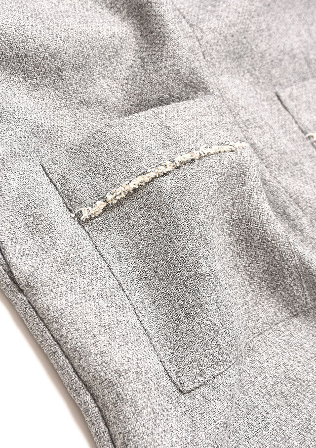 もたつき感がないポリエステル×レーヨンをベースに、表情のあるツイードを丁寧に織り上げた一枚です。