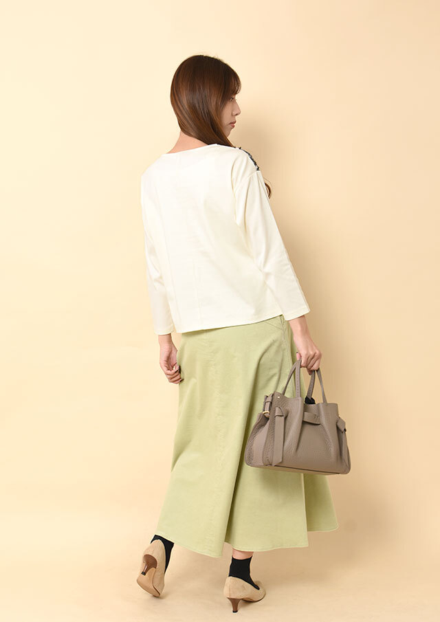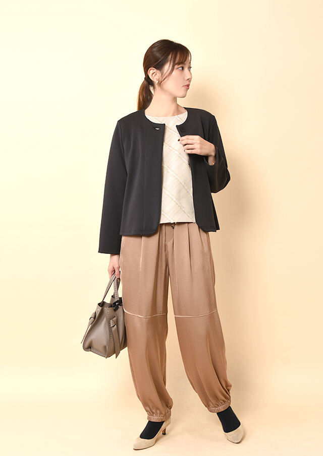 ウール素材のスカートやロング丈のコートと合わせると、全体のバランスがよく上品な印象に仕上がります。