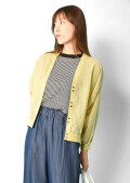 Vネックの前開きカーディガンで、首裏にもゆるやかなVカットを入れ、後ろ姿にも抜け感をプラス。
