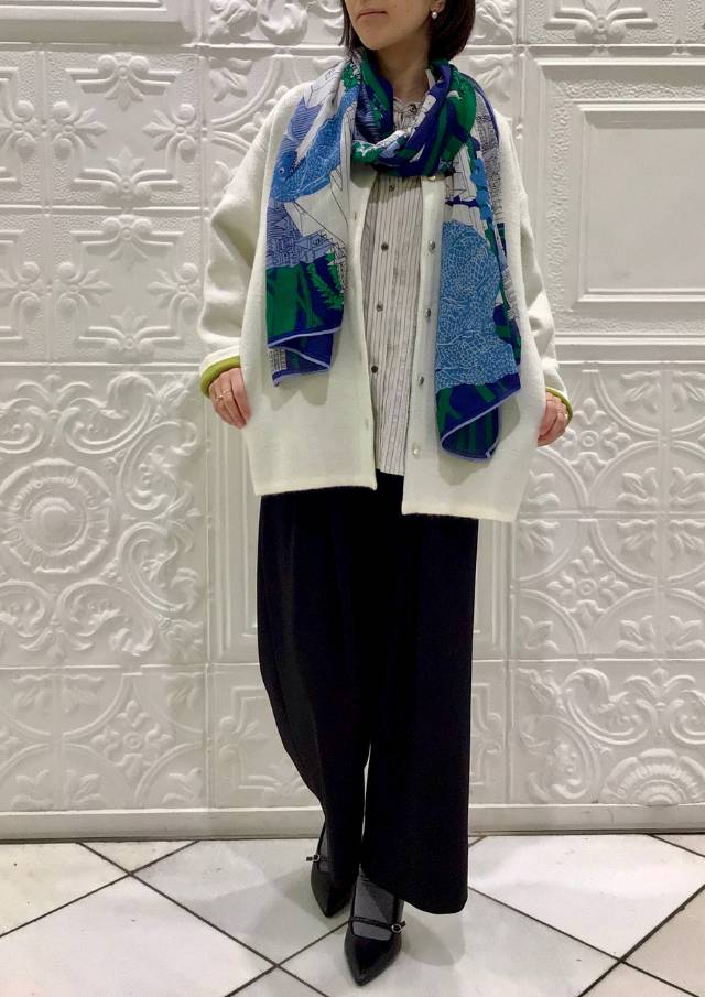 スカーフやストール、帽子など小物をプラスすれば、シンプルながらも洗練されたレイヤードスタイルが完成します。