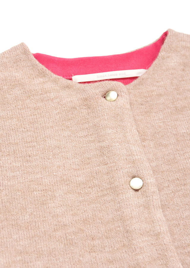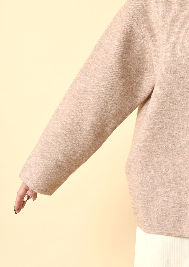 ふんわりとした起毛感のある杢調ニットと、カラーニットを重ねたダブルフェイス生地。