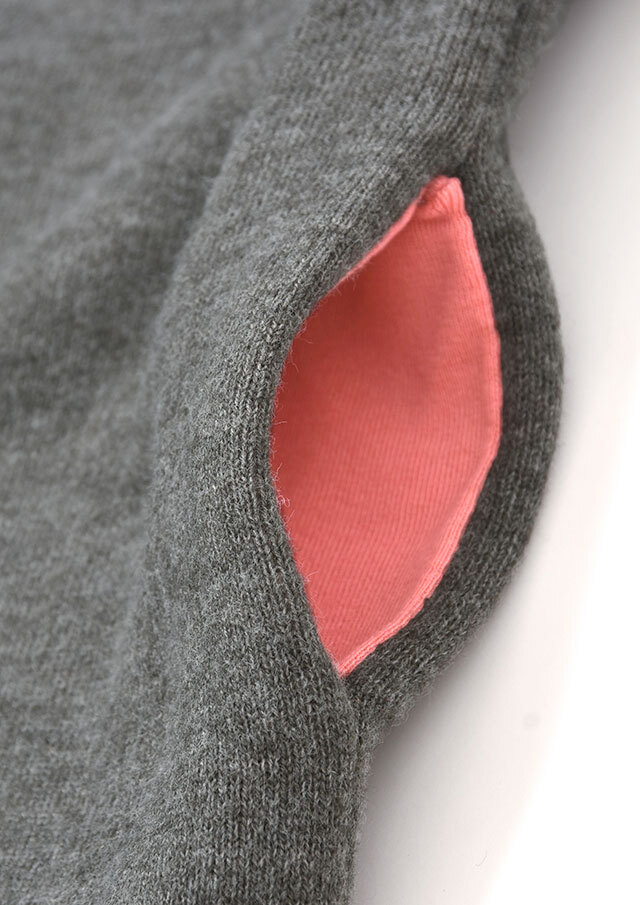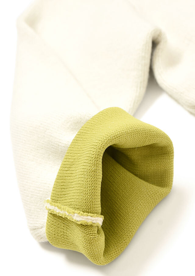ダブルフェイス生地なので、袖口を折り返すと配色デザインを楽しめます。