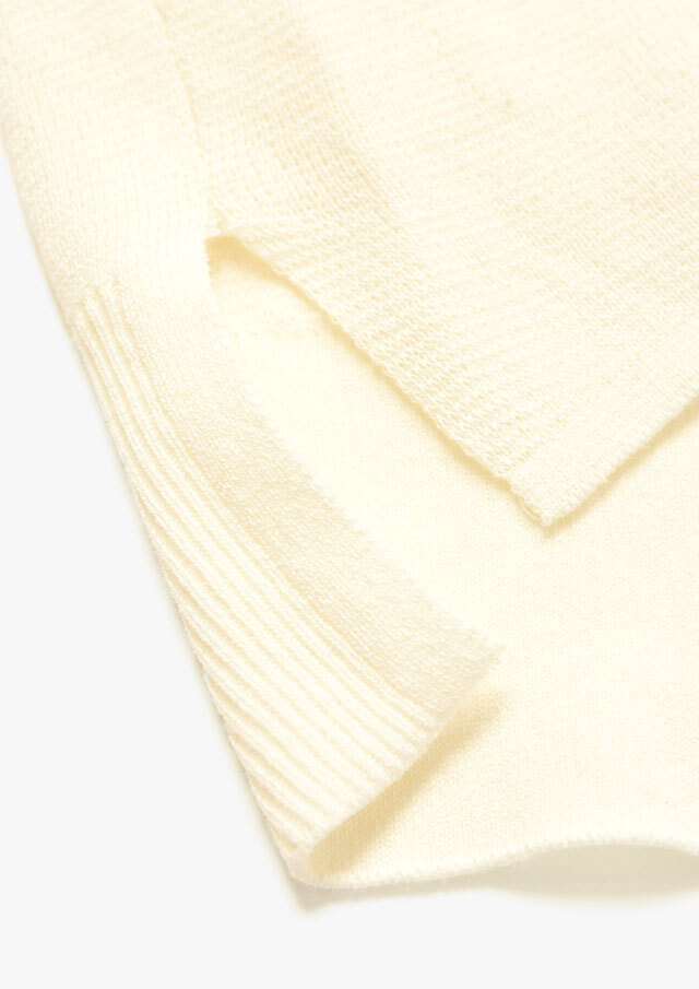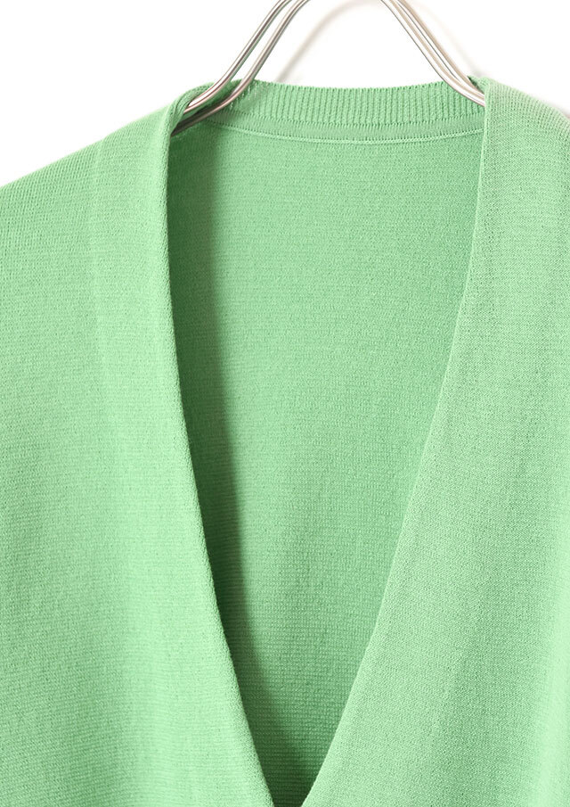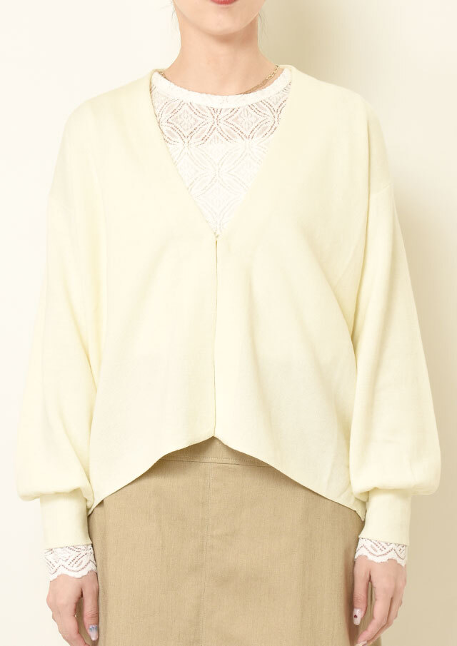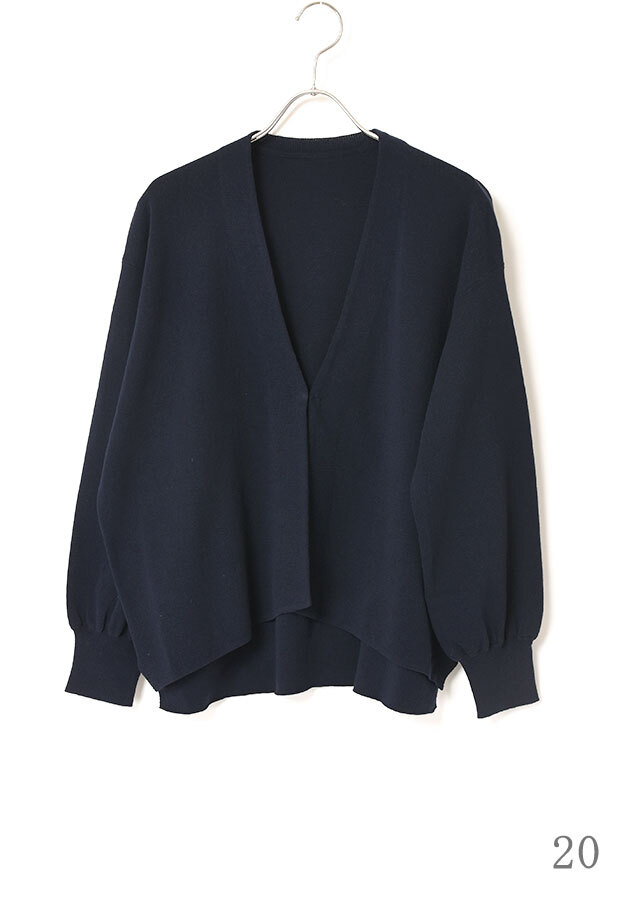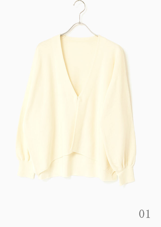 ミラノリブで編み立てることでほどよい厚みとハリを持たせ、キレイめにも使える羽織りに仕立てました。