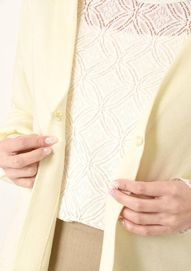・この製品は繊細な素材を使用しておりますので、激しい運動や極度の力が加われば糸切れ、引っ掛けを招く恐れがありますので、
