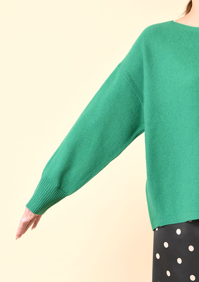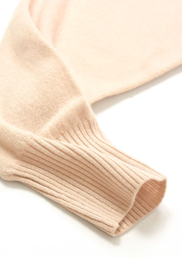 袖口はリブ編みで程よく引き締め、裾は自然に流れるラインで軽やかな抜けを演出。