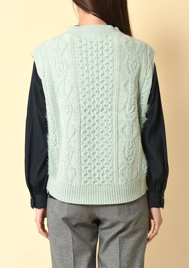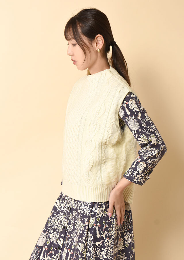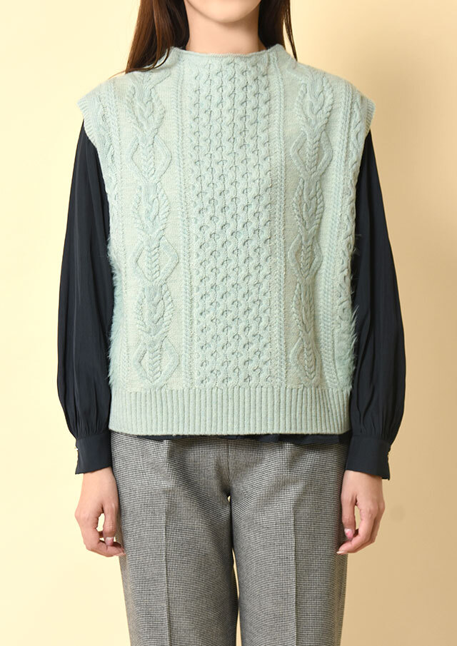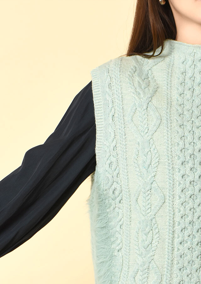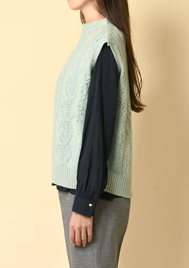 ボトルネックのプルオーバー型ベスト。