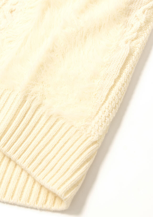 ニットの立体感や、フェザーヤーンのやわらかい毛羽が、着るだけで表情を添えてくれます。