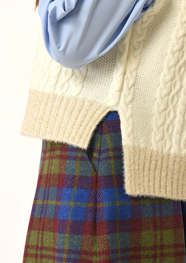 裾のラメはあえて存在感を出し、レイヤードした際のポイントになるデザインです。