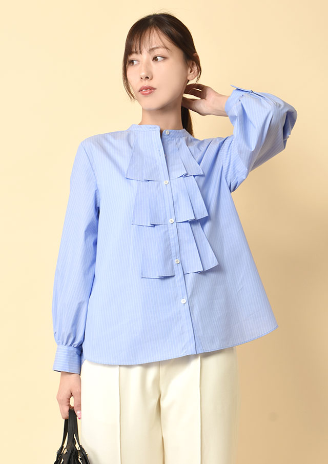 首元はハイネック仕様で、顔まわりに自然な奥行きをプラス。
