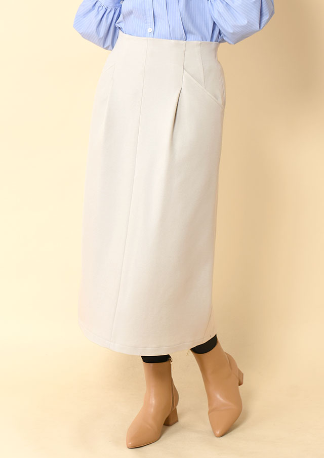 前後差のある丈感が、重ねたアイテムとのバランスを取りやすくしています。