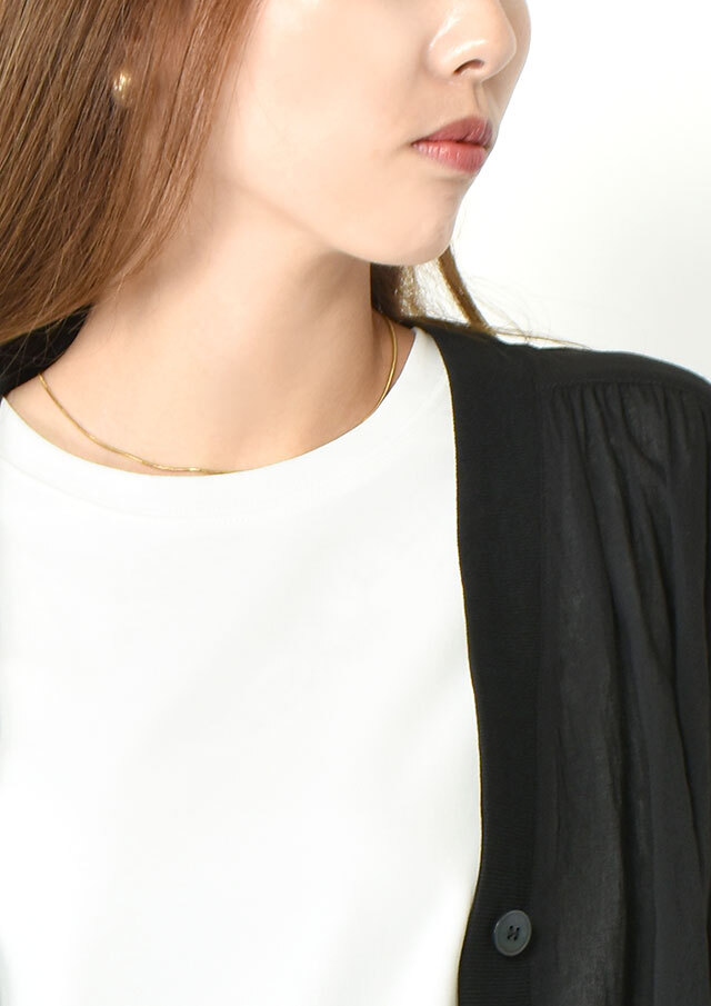 厚すぎない生地感で、一枚ではもちろん、レイヤードスタイルのベースとしても活躍します。