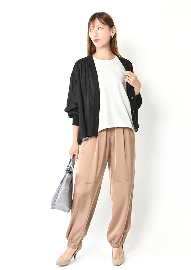 デニムやワイドパンツと合わせれば、肩の力を抜いた大人カジュアルに。